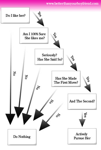So, like an earthworm stalking it’s prey, I put my usual game on her. Since my last flowchart was so popular, I’ve made another one to show you how I dealt with the ladies back then: