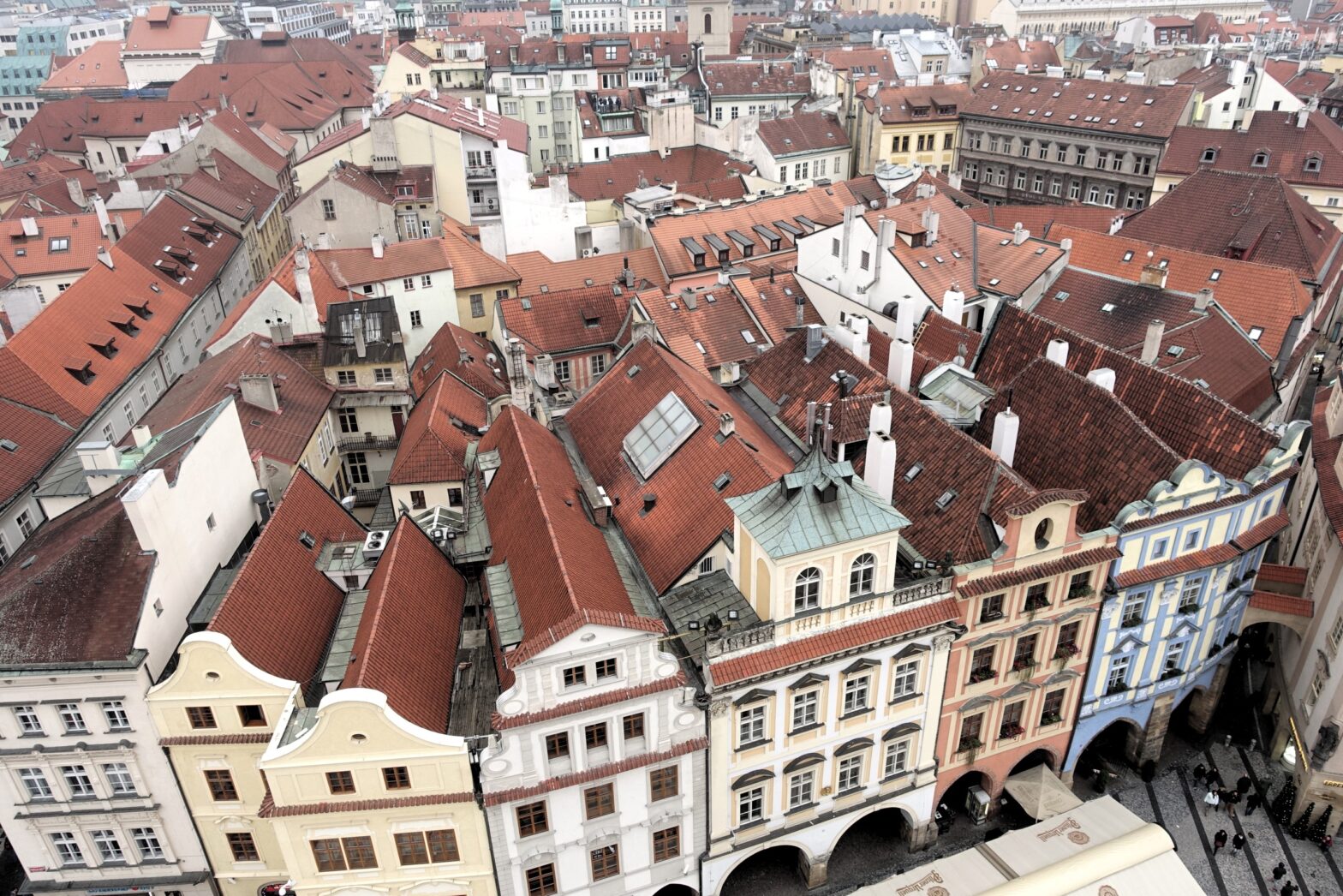 Photo is a section of Prague from above.