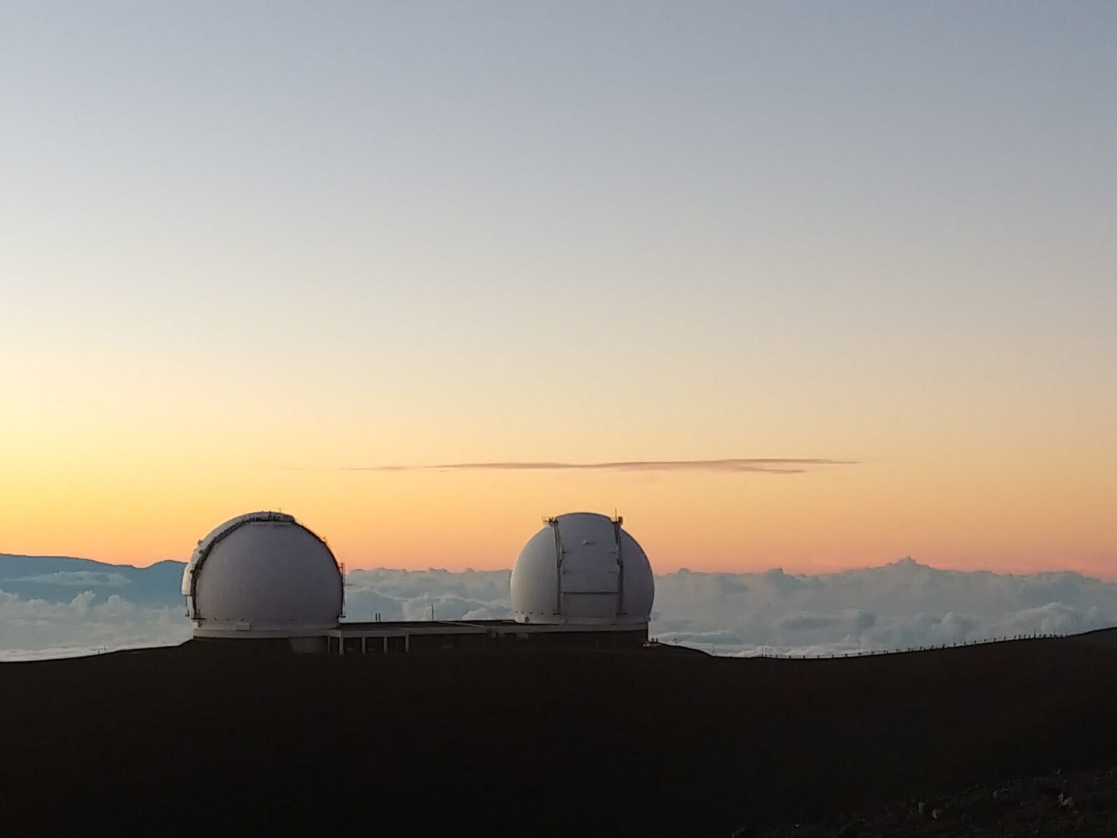 Photo is of two of the telescopes in the Mauna Kea observatory.